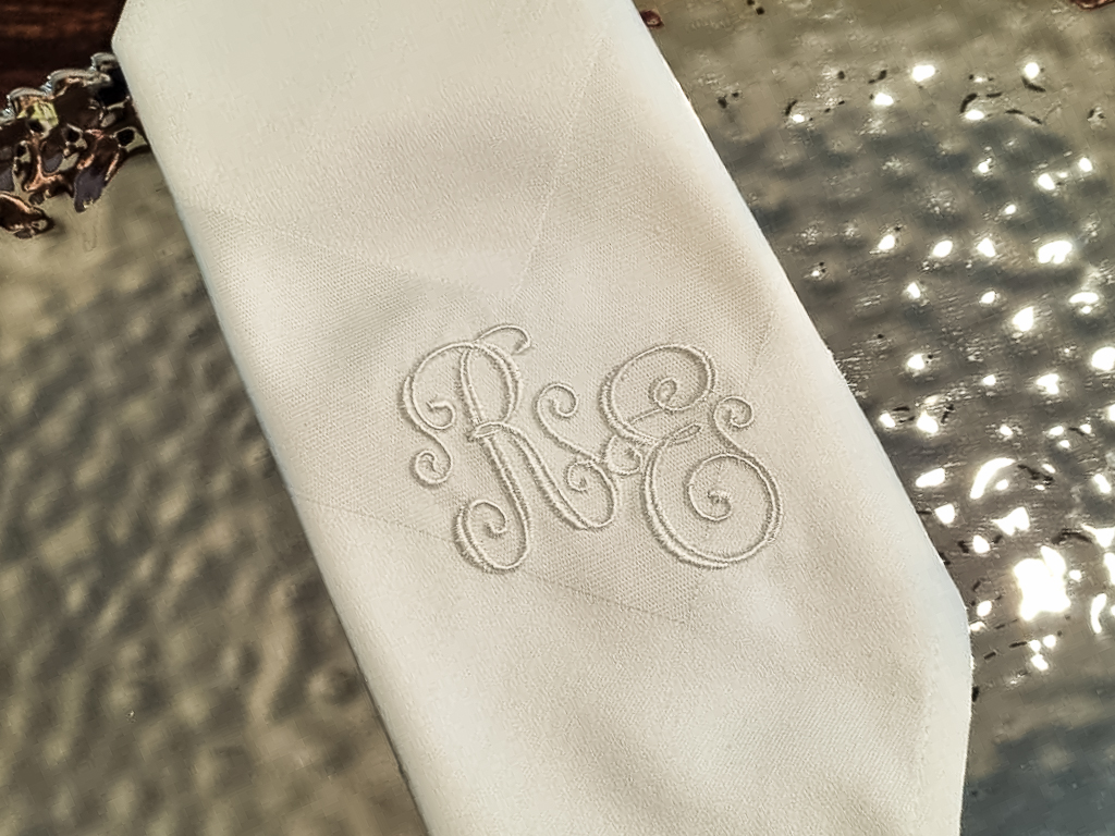 Feine Damastserviette mit gesticktem Monogramm #5