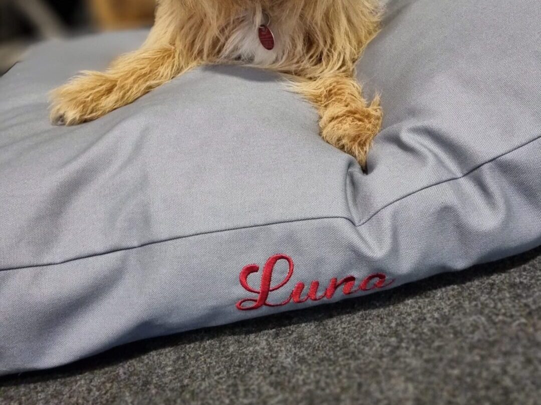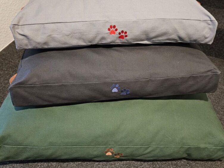 Erhältlich in vier Größen und individuell bestickbar mit Namen oder kleinen Dekorelementen. Jedes Kissen entsteht auf Bestellung und wird speziell für seinen vierbeinigen Besitzer gefertigt.